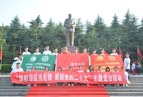 在伟人故里,实践队员们追寻伟人足迹,与韶山供电公司东方红共产党员服务队联合开展“旗帜领航当先锋,喜迎党的二十大”主题教育实践活动,深入毛泽东故居、韶山烈士陵园、铜像广场等地,切身感悟伟大领袖的生平事迹和革命史诗。