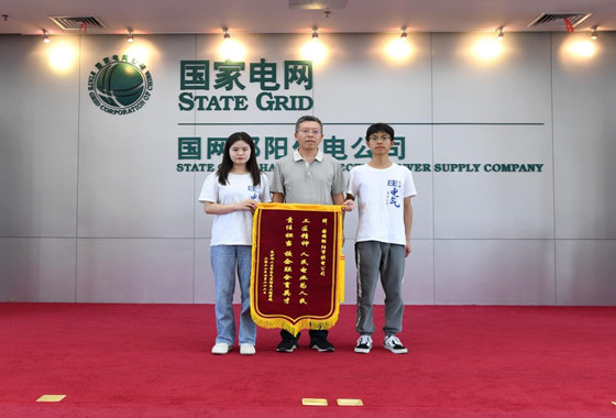 会议伊始,由实践队队长秦茂翔进行主题为“校企联合传薪火,‘电’亮青春新航程”的实践队成果汇报展示,汇报从团队体系、实践内容、团建活动、时间成果四个方面展开。随后,实践队队员罗显昭、陶子繁、张羽月作实践感悟分享。现场播放由全体实践队员参与制作的总结视频《和你一样》,引发全场共鸣。紧接着,陈超强为优秀实践队员颁发证书,并由实践队员代表向国网邵阳供电公司赠送锦旗。