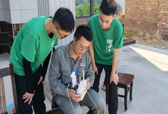 为保证线路供电的安全性和可靠性,7月26日,衡山县供电公司的两位实践队员吴晨曦同学和王晋韬同学跟随输电运检班班长戴仕杰前往永萱线利用无人机进行线路故障巡查,并学习无人机操作技巧。