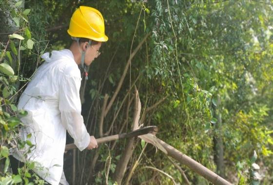 729日上午,衡阳实践队队员蒋钰、黄佳峻跟随生产部门工作人员易金国前往萱洲供电所附近开展砍青工作。
