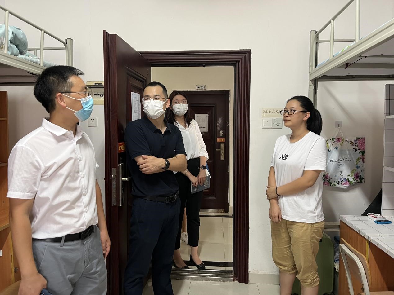 828日,为进一步做好疫情防控常态化阶段学生教育管理工作,了解新老生安全到校返校情况、身体健康状况,帮助同学们尽快调整心态、适应校园生活,电气学院党委副书记陈仁凯、党委副书记任艮丰、副院长马瑞、副院长姜飞、副院长王文、副院长席燕辉共同前往学生寝室慰问返校学生。