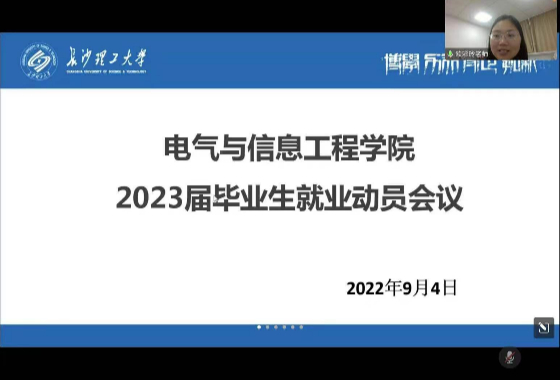 9月4日晚,电气学院召开2023届毕业生就业动员大会。年级辅导员范凯老师和2023届全体毕业生参加会议,学院就业专干欧彩玲老师主讲。