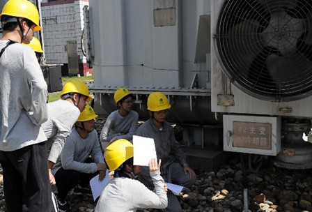 进入设备区,巨型变电器如沉默的钢铁巨人矗立,密布的电缆在阳光下熠熠生辉,电流奔腾的嗡呜声在空气中隐隐震动,实践队员们不禁赞叹现代电气工业的精美。在专业电网师傅的生动讲解中,同学们逐步挖掘出变电器如何安全稳定运行的秘密。踏入主控室,队员们目光紧锁巨大屏幕上跳动的数据流——这座被喻为城市脉搏的实时监控系统摄住了每一个人的心神,让我们感受到智能电网的魅力。