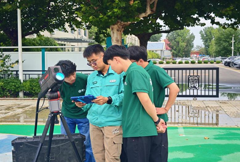 下午的课程更是“科技感”十足。带队师傅尹擎带领队员们重点学习了“激光炮”清除异物的现代化运维技术。在实操现场,尹师傅先耐心讲解了激光炮的原理和操作要点。在尹师傅的指导下,队员们学会了组装激光炮并逐渐掌握了操作技巧。最终,队员们熟练掌握了设备参数设定、安全距离把控等实操技巧,还亲身感受到了“激光清障”在智能电网运维中的巨大潜力。