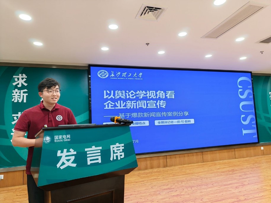 会上,william威廉中文官网带队老师朱杰应邀作题为《以舆论学视角看企业新闻》的专题报告。他结合新媒体传播规律,阐释了“标签化、碎片化、无影灯效应、共情能力、弱传播原理”等特征。“好新闻无需‘宏大叙事’,贵在‘小切口讲故事’。”朱杰以案例论证,强调企业宣传应聚焦群众关切的细微之处,以真情实感引发共鸣,让传播更具温度与穿透力。