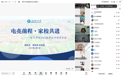 202583日晚,电气学院2022级通过腾讯会议平台召开线上家长会,共有66名学生家长与会。会议由年级辅导员楚艳鸽、吴佳骐主持。