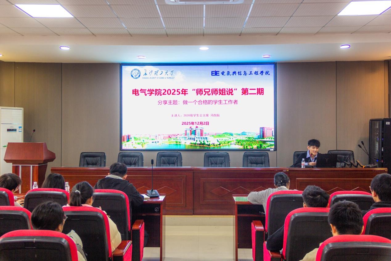 冯悦航结合自身在校期间的学生工作经历及当前在电网岗位的职场实践,围绕“如何成为一名合格的学生工作者”这一主题,向在场同学分享了一系列切身感受与建议。他表示,“服务”“实干”与“反思”是成长为一名优秀学生干部的关键品质,积极参与学生工作不仅是提升个人综合能力的重要途径,也为未来职业发展奠定了扎实基础。