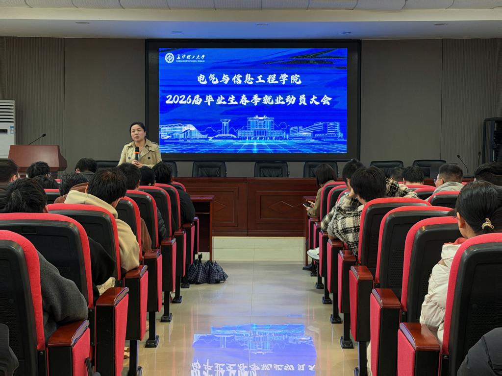 4月3日上午,学院2026届毕业生春季就业动员大会在工一B503召开,院党委书记丁丹出席并讲话,院党委副书记、副院长周巍作工作动员部署,毕业班辅导员及未就业毕业生参加会议。