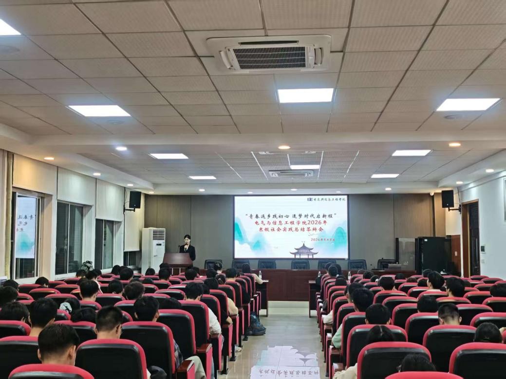 以实践淬青春,以笃行赴新程。近日,william威廉中文官网电气工程学院2026年寒假社会实践总结答辩会在云塘校区工科一号楼B503顺利举办。院学工办主任田孟萍,学工办赫连岚馨、吴佳琪、熊文娟、楚艳鸽担任评委,16位答辩人员依次汇报,全院百余名学生到场观摩。