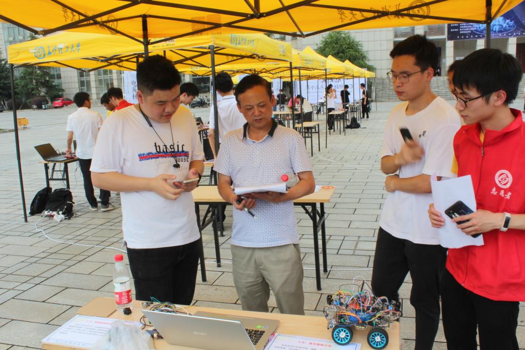 上午10时,评委老师开始对每个项目逐一检查并评分。经过为期两个月的遴选,共有46个参赛项目成功入围本次终评。每组参赛队伍就作品设计理念、运行制作原理、成品展示几个部分进行了详细的讲解。各位评委老师认真听取了各参赛小组的汇报,并在成品展示环节针对每小组的作品分别给予了中肯的建议和意见。