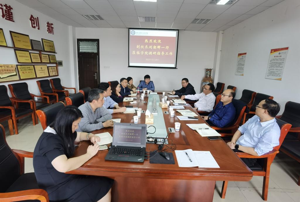 5月24日下午,副校长刘朝晖,人事处处长刘宏伟、副处长何忠明、徐欣国等一行来学院调研指导工作。学院党委书记伍接朝、副书记陶双、常务副院长杨洪明、副院长唐欣、马瑞等院领导和教师代表参加调研会。