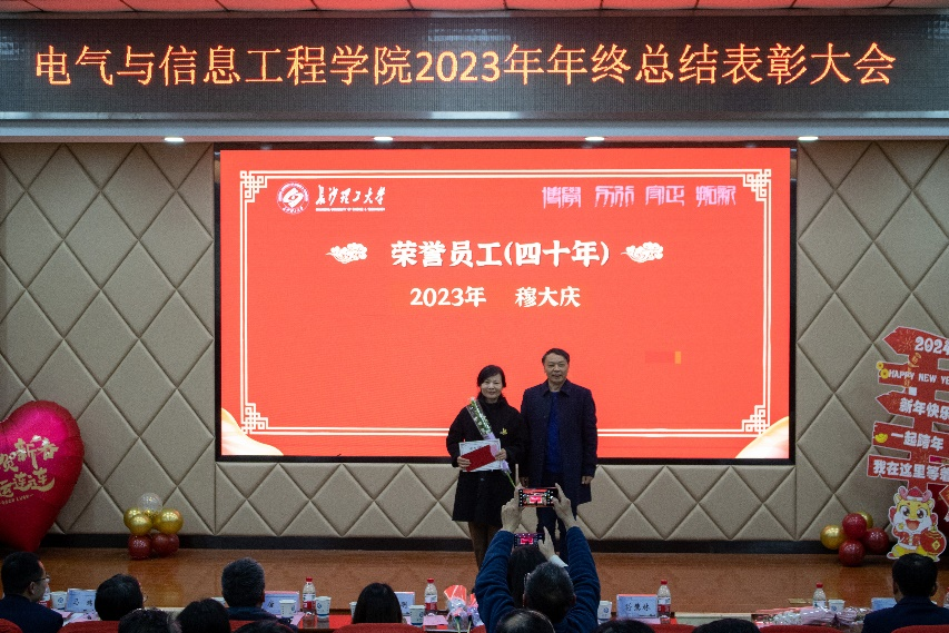 会议第三阶段,举行了荣退员工、荣誉员工颁奖仪式和新员工入职仪式。在表彰环节,老师们献上了精彩的文艺节目,颜勤老师带来的琵琶独奏《送我一支玫瑰花》,资粤老师等带来的三句半《躬耕教坛 强国有我》,以及金维香、吴佳骐老师等带来的舞蹈《相亲相爱》,为全体教职员工和离退休教师送上了真挚的新年祝福,为大会增添了色彩。