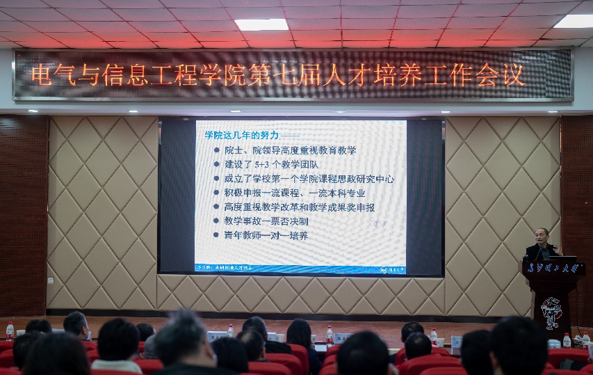 2024年1月18日,学院第七届人才培养工作会议在文科楼圆厅顺利召开。校长曹一家出席大会并致辞,湖南大学教授滕召胜和湖南师范大学教授黎大志应邀到会作专题报告。大会由学院党委书记丁丹主持,学院全体教职工及部分退休老师参加。