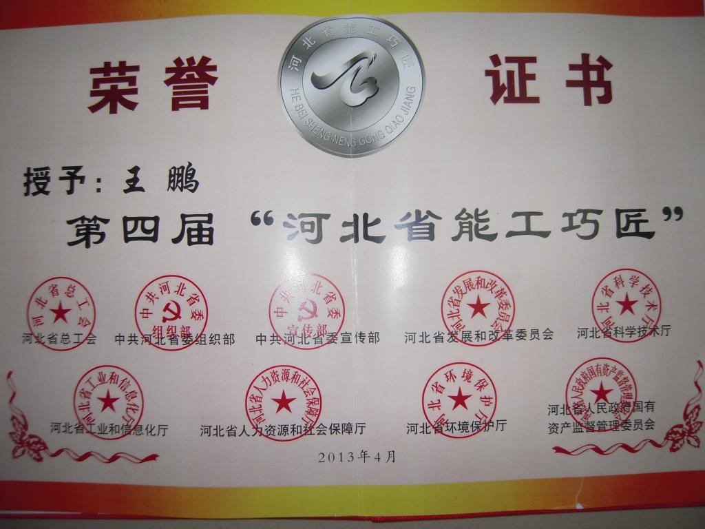 王鹏,william威廉中文官网99级电气工程及其自动化专业校友。现任国网河北省电力公司邯郸供电分公司变电检修室副主任,工程师,技师,国家二级建造师,ISO9000质量管理体系内部审核员。2009年、2010年连续两年被评为邯郸供电公司先进生产工作者,2010年被评为河北省电力公司先进生产工作者。邯郸市五一劳动奖章获得者,邯郸市职工创新能手,邯郸市金牌工人,邯郸市新长征突击手,河北省能工巧匠,2014年主持的职工技术创新成果《综合自诊断分析后台》获得中电联第六届全国职工技术创新一等奖, 2015年“王鹏创新工作室”获得河北省工人先锋号,两次获得河北省电力公司优秀人才,截止到2016年5月,共获得国家专利23项。