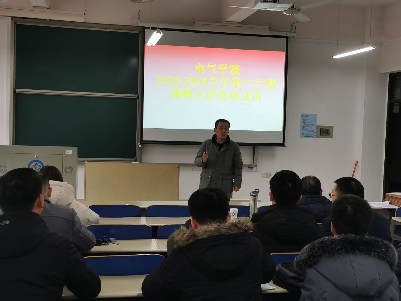 试讲按照学校“关于做好2020-2021学年第二学期教师课程主讲资格申报和试讲工作的通知”要求进行,先后由孙辰昊(试讲课程《电力系统继电保护原理》)、陈春(试讲课程《发电厂及其电气部分》)、陈俊名(试讲课程《数字电子技术》)、关维德(试讲课程《电机学》)、蔡辉(试讲课程《自动控制原理》)、罗晶(试讲课程《计算机控制技术》)、杨忠毅(试讲课程《电工与电子技术基础》)王炜宇(试讲课程《电机学》)、李云丰(试讲课程《电工电子技术》)上台试讲。