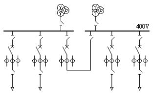 (3) 400V电压等级有4条进出支路,主接线采用单母线分段;每条支路所接设备(变压器或线路或电源或负荷)可灵活选择。