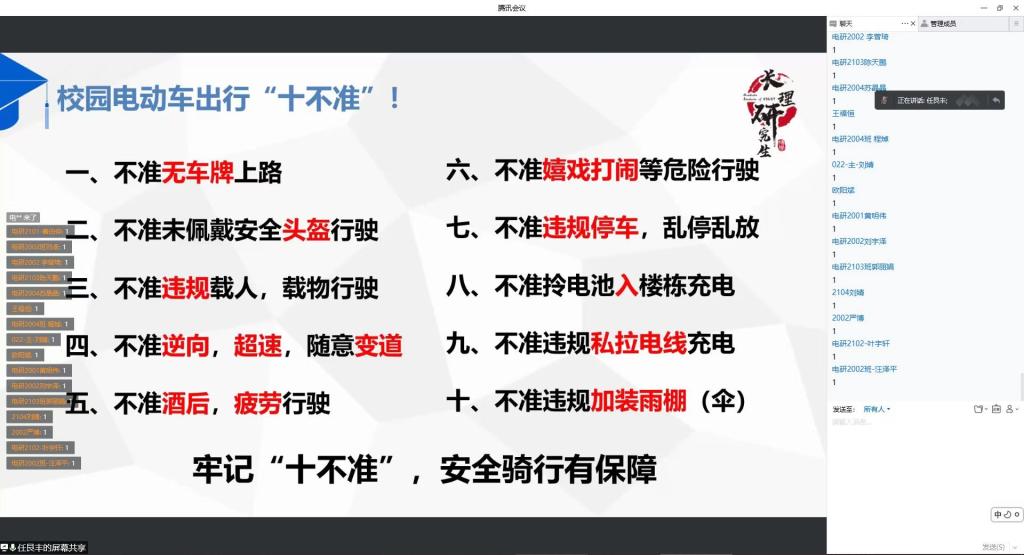 4月22日晚,电气学院召开研究生安全教育线上会议,会议由研究生辅导员杨湘怡主持,电气学院党委副书记任艮丰主讲,全体硕博研究生参会。