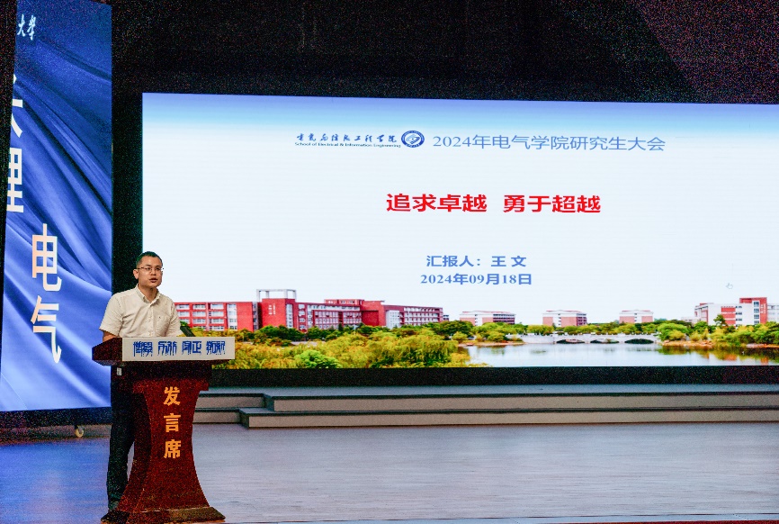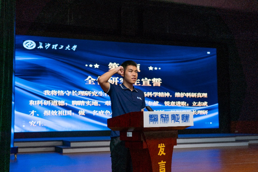 大会最后,由24级新生代表傅杰林带领全体研究生宣誓。在洪亮的宣誓声中,饱含着新时代电气人立志奋发图强、无私奉献、踔厉奋发,并以实际行动回报学校、回报祖国的坚定信念。