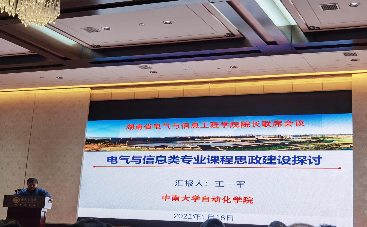 中南大学自动化学院党委书记王一军教授、湘潭大学自动化与电子信息学院段斌教授及william电气与信息工程学院副院长唐欣教授分别以“电气与信息类专业课程思政建设探讨”、“认知科学在工程约束条件类毕业要求的应用”和“一流课程建设的一点思考”为题作了发言交流。