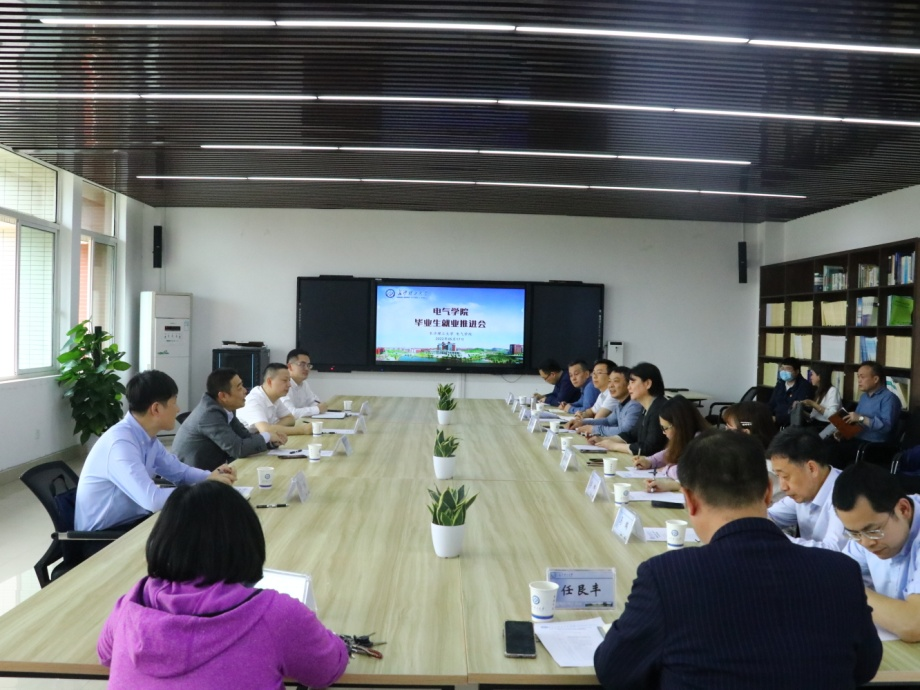 就业推进会在电气学院四楼会议室举行,招就处处长曹瑛、副处长李娜受邀出席,学院党政领导班子全体成员、各专业系负责人和学工办全体辅导员老师参会。