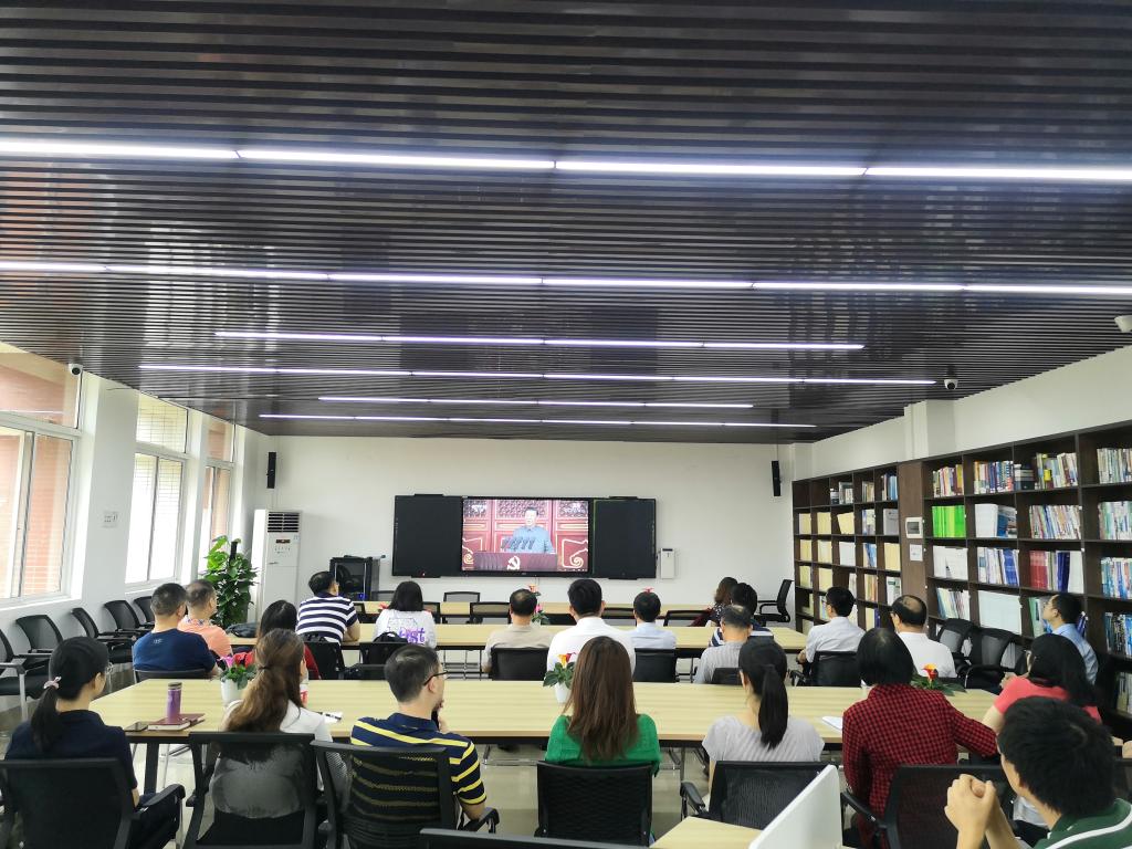 院党委书记符慧林及领导班子其他成员、机关党员干部和各系党支部书记及其他负责同志在学院教师发展中心,院党委副书记任艮丰及学院新发展党员在工一B503,共150余人集中收看了庆祝大会。其他师生通过电视、网络等其他媒体自行收看了庆祝仪式。符慧林说,“身为一名老党员,见证党的百年盛典,看到中国共产党带领人民取得的辉煌成就,听到总书记讲到实现中华民族伟大复兴进入了不可逆转的历史进程!令人振奋,令人自豪!”