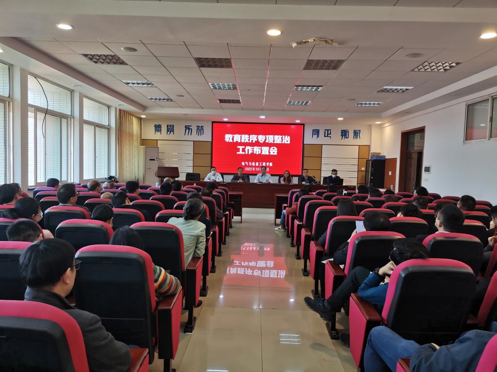 10月11日下午,学院在工一B503召开教学秩序专项整治工作大会。会议由院党委书记伍接朝主持,副院长唐欣布置工作,全体院领导及全院教职工参加。