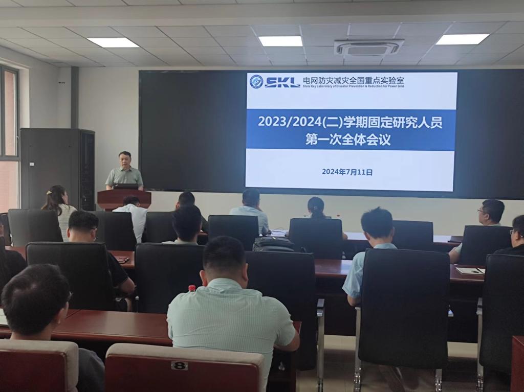 7月11日上午,电网防灾减灾全国重点实验室(以下简称“实验室”)在工训楼300会议室召开了固定研究人员第一次全体大会。学院党委书记丁丹主持会议,实验室副主任姜飞出席并讲话。