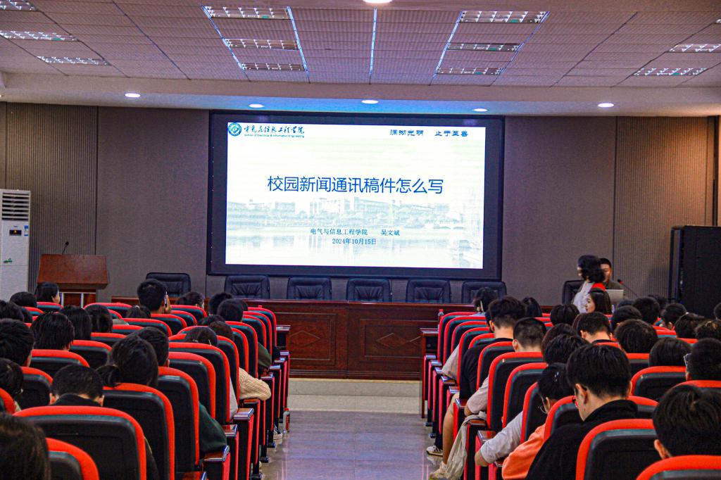 10月15日下午,学院2024年宣传工作培训在工科一号楼B503报告厅举行。院党委副书记周巍出席并总结讲话,学院组织员吴文斌应邀主讲,学院机关全体工作人员及分团委、学生会、研究生会、学生党建、年级分会学生干部及各年级团支部组织宣传委员共210余人参加。会议由分团委书记田孟萍主持。