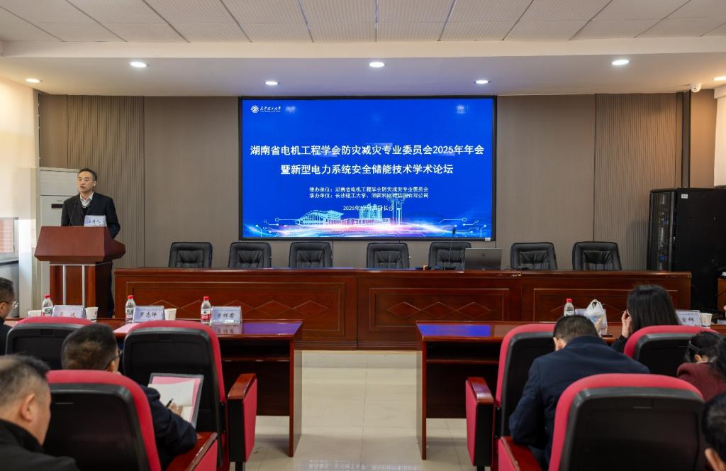 12月20日,由我院承办的 “湖南省电机工程学会防灾减灾专业委员会2025 年年会暨新型电力系统安全储能技术学术论坛”在云塘校区举行。本次活动聚焦新型电力系统防灾减灾与安全储能技术核心议题,旨在搭建行业高水平学术交流平台,推动技术创新与产学研深度融合。开幕环节由蒋正龙主持。