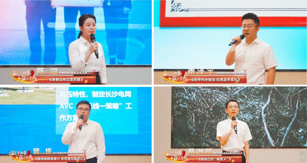 活动现场,包括我院校友陈溢、秦泽宇、曾赟、易洲楠在内的10名杰出青年荣誉获得者逐一上台进行了展示分享,内容精彩纷呈,充分展示了长电青年真抓实干、勇于担当的良好风貌。