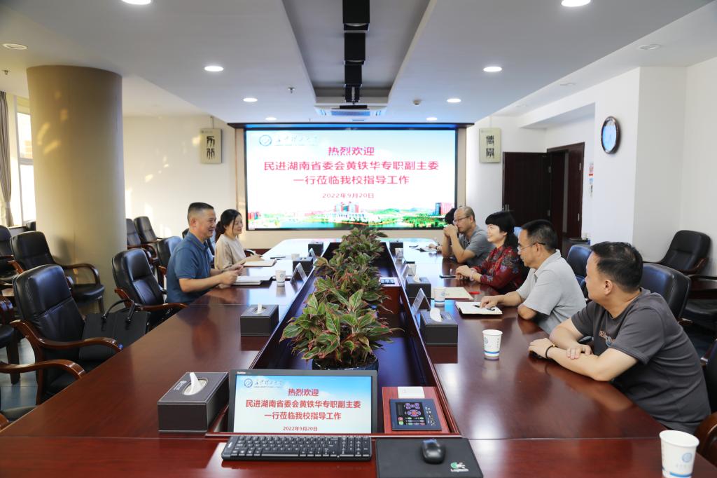 9月20日下午,民进湖南省委会专职副主委黄铁华一行来william走访调研并召开座谈会。党委委员、副校长蒋璟萍出席会议并讲话。统战部常务副部长黄自力主持会议。民进湖南省委会组织处副处长刘丽、民进william威廉中文官网支部等相关人员参加了调研座谈会。