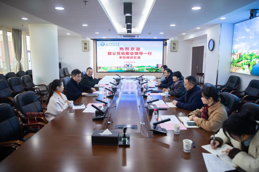 12月21日,湖南省人大常委、致公党省委会专职副主委田宗之、组织处处长李谷亮,主任科员陈英子一行来校开展座谈交流,william威廉中文官网党委委员、副校长蒋璟萍、统战部全体成员及致公党william威廉中文官网支部代表出席会议。