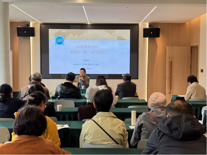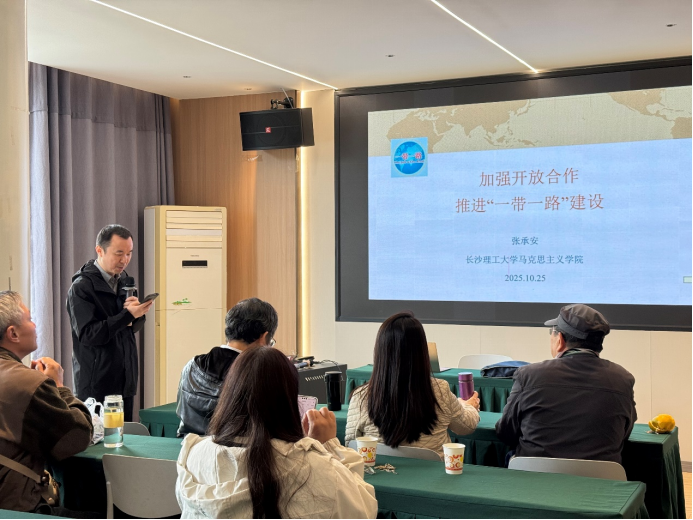 在专题学习环节中,张承安教授作主题发言,围绕“一带一路”倡议的实施背景、合作成果、新举措及未来发展机遇进行了深入阐述。张承安教授指出,开放合作是推动经济高质量发展的必由之路,也是构建人类命运共同体的重要支撑。当前,应进一步发挥统一战线优势,凝聚智慧与力量,助力“一带一路”建设行稳致远。