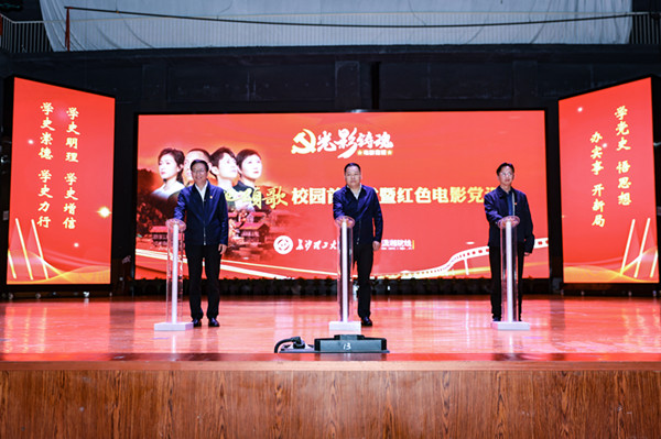 首映式上,学校与潇湘电影集团还共同为红色电影教育基地揭牌,这也是湖南省校企共建的首个红色电影教育基地。该基地将充分利用潇湘电影集团丰富的电影资源,通过红色电影进校园、红色电影党课等活动,用师生喜闻乐见的方式重温峥嵘岁月,追寻红色足迹、缅怀英雄楷模,开展爱国主义教育、革命传统教育,传承红色基因,砥砺奋斗精神。