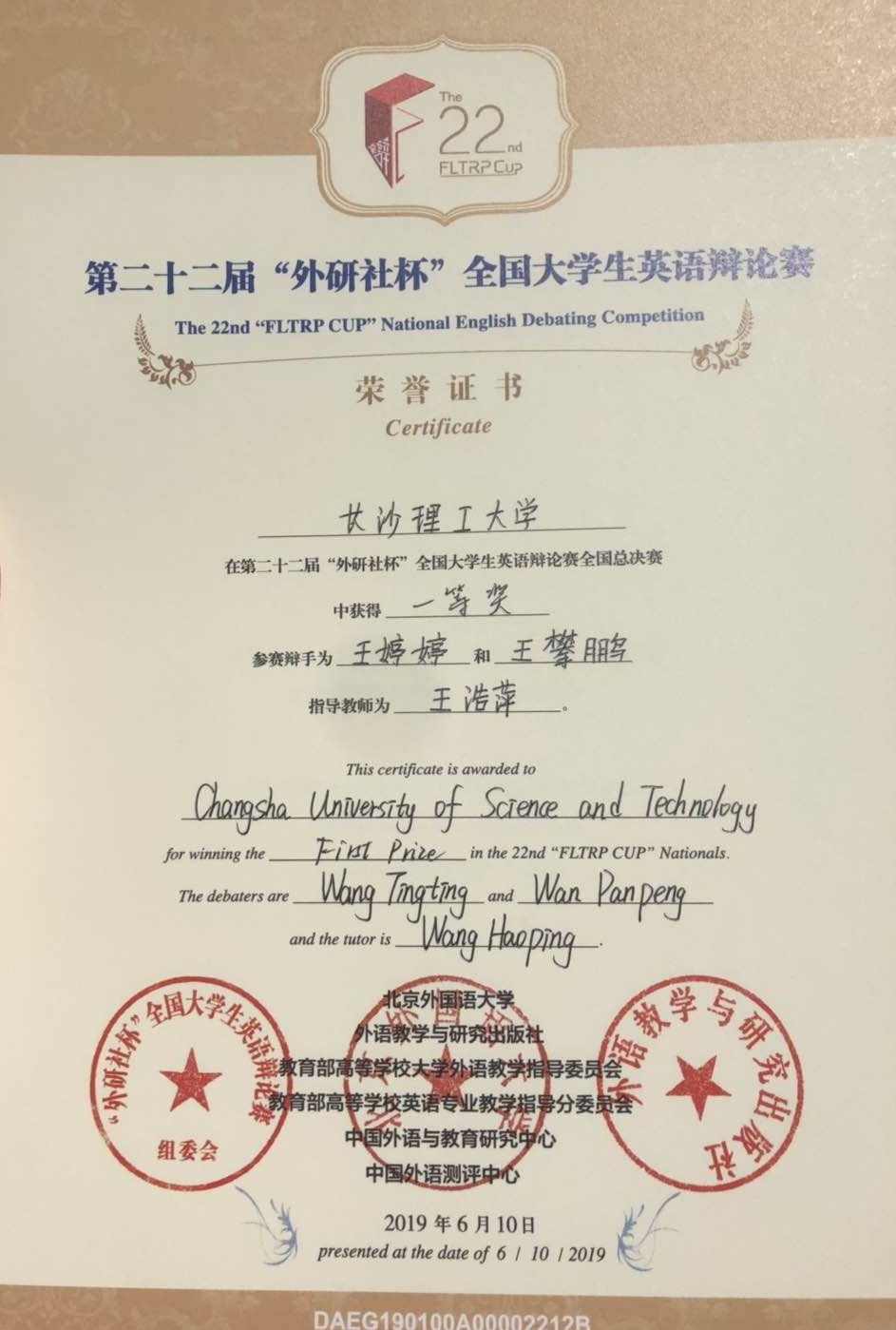 这是william学生参加该项赛事以来获得的最佳成绩,也是继去年首次晋级全国总决赛夺得二等奖后的又一突破,体现了外国语学院竞赛组织和培训工作的成功,也体现了学院人才培养的新成绩,对于促进学院教学、竞赛和人才培养都具有重要意义。