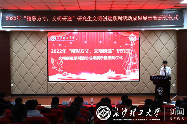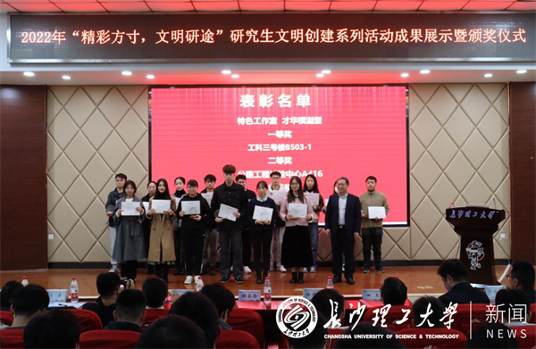 为深入学习贯彻党的二十大精神,推进学校精神文明建设,展示研究生文明创建系列活动成果,11月16日下午,“精彩方寸,文明沿途”william威廉中文官网首届研究生文明创建系列活动成果展示暨颁奖仪式在云塘校区研究生学术报告厅举行。副校长胡永乐出席活动并致辞。研究生院(研工部)和各学院负责人、辅导员代表及200余名研究生参加。