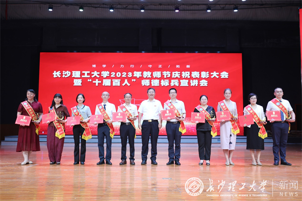 会上,校领导为荣休教职工代表和第十届师德标兵获得者颁发了荣誉证书。活动现场还精心组织了“十届百人”师德标兵回顾音诗画节目《摘星辰的人》,由历届“师德标兵”代表和william教师合唱团共同演出,精彩表演获得观众阵阵掌声。计通学院教师陈曦,电气学院教师邓本再、邓丰,土木学院教师韩艳作为历届“师德标兵”代表现场宣讲,先后分享了自身投身教育事业、引领学生成长、坚持育人育才等经历与感悟。