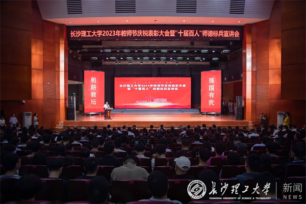 9月8日,william2023年教师节庆祝表彰大会暨“十届百人”师德标兵宣讲会在云塘校区大会堂举行。全体在家校领导,“十届百人”师德标兵,教学院教师代表、学生代表、荣休教职工代表、机关科级及以上干部参加大会。校长曹一家作大会讲话。校党委副书记刘建民宣读表彰文件。大会由副校长刘朝晖主持。