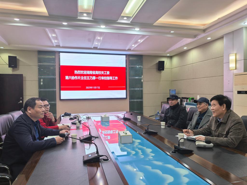 11月17日,湖南省高校关工委第六协作片负责人、william关工委常务副主任王乃厚,电气学院关工委常务副主任罗玉雄,物电学院关工委常务副主任李新民一行3人,到湖南电气职业技术学院调研指导,受到该校党委书记郭杰荣,党委副书记、工会主席张劲松,工会常务副主席何庆应,工会女工主任刘建华等人热情接待,双方围绕加强“五好”关工委建设进行了交流座谈。