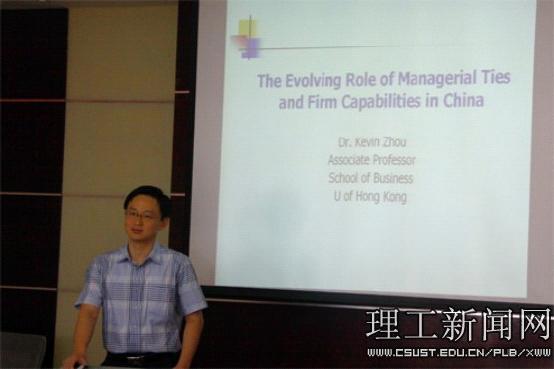 5月29日上午,香港大学周政教授应邀在william金盆岭校区7-204会议室作学术报告。报告会由企业管理系主任黎建新教授主持,经济与管理学院副院长赵华教授、学校特聘教授苏晨汀和企业管理系教师以及部分研究生参加了此次报告会。