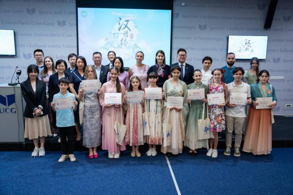 代表团在参观william黑山大学孔子学院期间,受到了学院中方院长高青龙和外方院长米莱娜的热情接待,谈传生对学院外聘老师的贡献表示感谢,并重点关心了他们的工作生活情况。之后,代表团在孔子学院办公室与中外语言交流合作中心静炜副主任带领的考察团进行了深入的会谈,谈传生代表学校就学校三所孔子学院的建设成效向中心进行了重点汇报,并表示:“适逢黑山大学孔子学院建立10周年之际,william威廉中文官网在教师派出政策激励、汉语课程进黑山大学选修课、当地教师培养等方面做出努力,力争高质量地办好孔子学院”。静炜对学校孔子学院的建设表示高度的认可。接下来,代表团会见了黑山大学校副校长Sanja Pekovic并参加了由中外语言交流合作中心与中国驻黑山大使馆共同主办,黑山大学孔子学院承办的2024年“汉语桥”世界中文比赛黑山赛区决赛。在决赛的颁奖典礼上孔子学院学生表演了各种中国传统节目,特别是合唱团表演了中文歌曲以及象征了中黑友谊的前南斯拉夫电影《桥》的主题曲,现场气氛十分热烈。语合中心副主任静炜、中国驻黑山大使范琨以及谈传生一起为获奖选手颁奖。