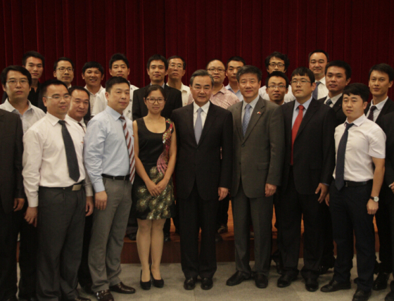 蒙罗维亚当地时间8月9日13:00,在结束了与利比里亚总统瑟利夫、利比里亚外交部长恩加富安会晤后,中国外交部长王毅在中国驻利比里亚大使馆宴会厅会见了使馆工作人员、中国驻利维和力量、政府援非机构以及中资企业代表,利比里亚大学孔子学院代表受邀参加了见面会。