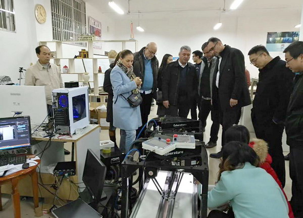 会谈后,代表团考察了william的大学生创新创业园与CRT赛车队,参观了学生的自主设计和创新创业成果,对刚刚荣获全国大奖的FNX-17赛车产生浓厚兴趣,并高度赞赏了william的实践教学水平与学生的创新能力。