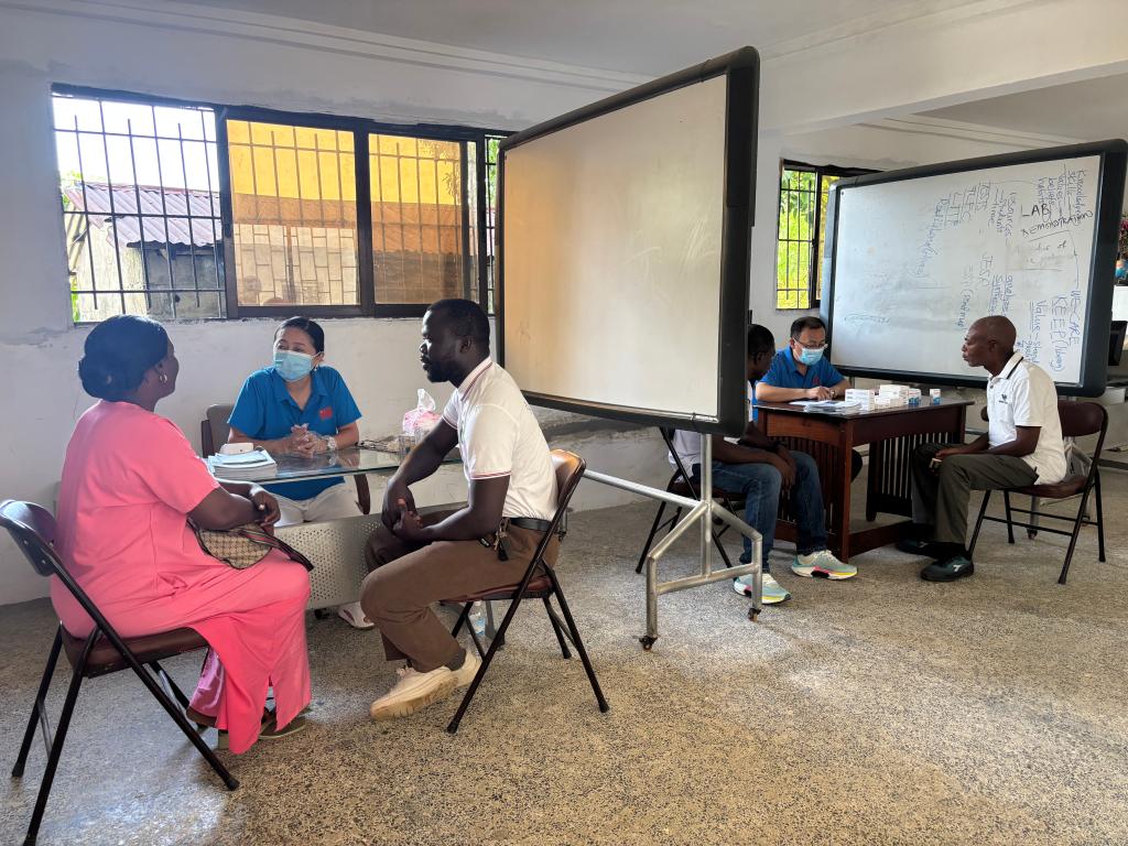 活动以医教协同为核心,围绕服务健康、传播文化目标同步推进。医疗队由6名专业医护人员组成,涵盖内科、口腔科、护理和药品管理等领域。作为本次义诊活动的协办单位,李巍率孔院中外教师全程参与沟通协调与翻译工作确保医患之间的顺畅交流,加深了利国群众对中国人文精神的理解和认可。