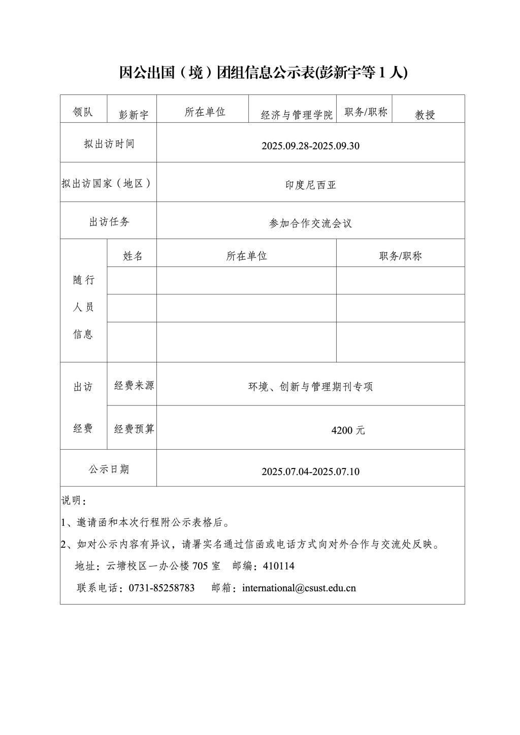 因公出国(境)团组信息公示表(彭新宇等1人)