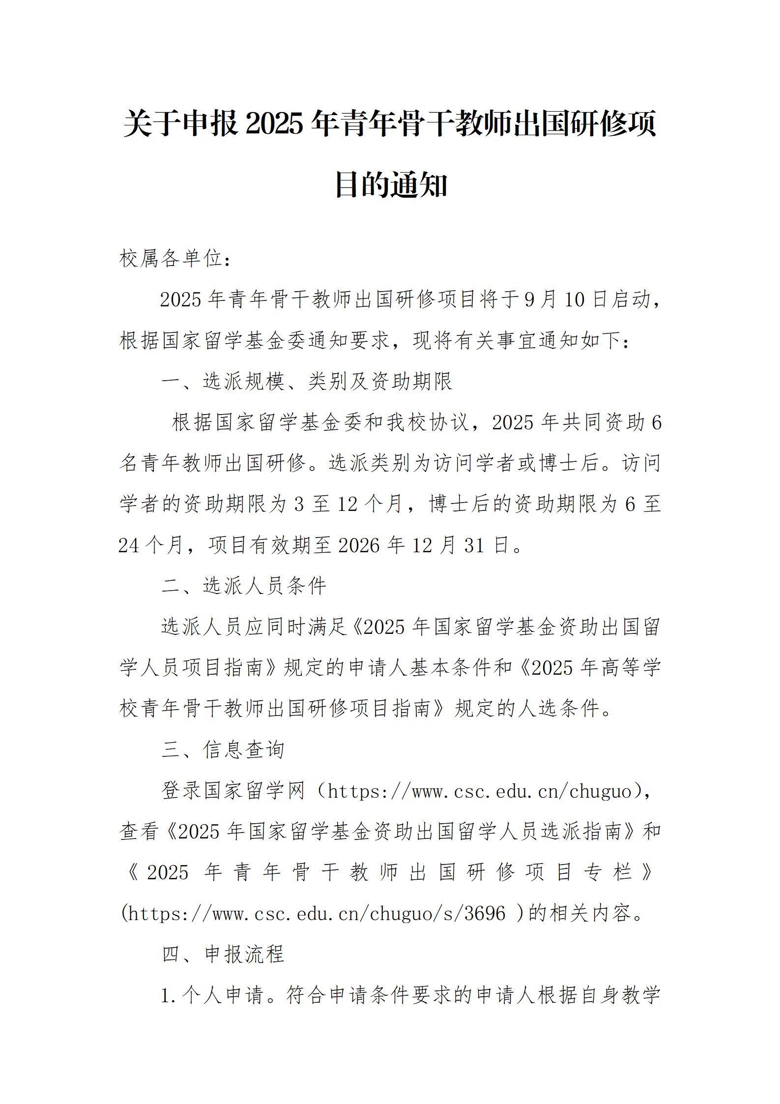 关于申报2025年青年骨干教师出国研修项目的通知