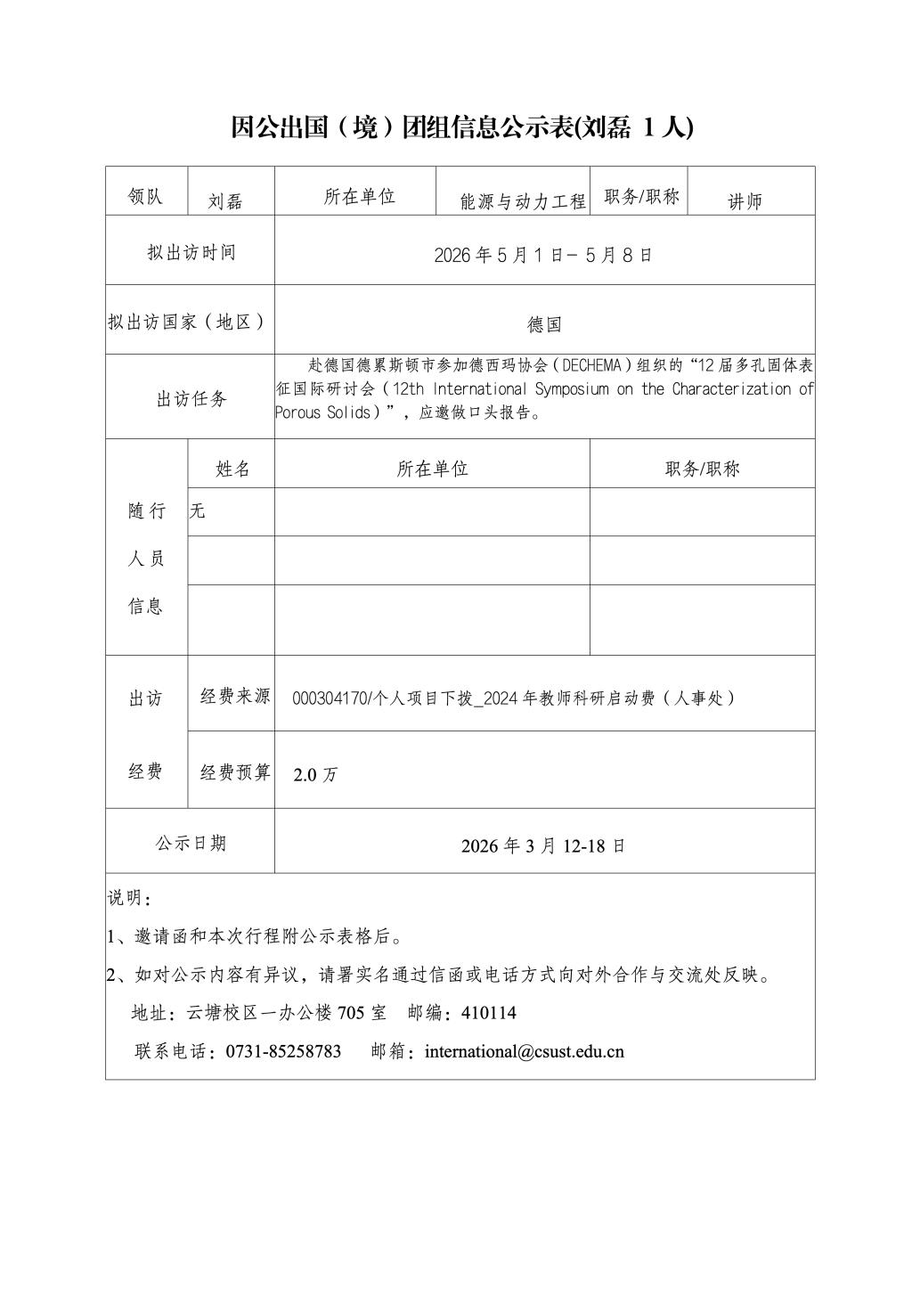 关于2026年创新型人才国际合作培养项目第一批申报人员的公示