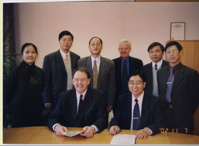 2002年郑健龙校长代表学校与英国胡佛汉顿大学校长约翰·布鲁克斯教授签订合作与交流协议书