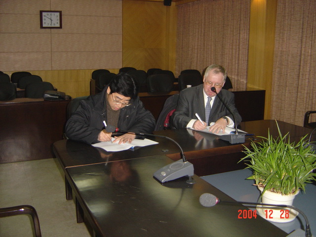 2004年12月郑健龙校长与来访的南布列塔尼大学校长普拉多博士签订协议