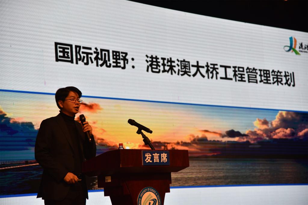 高星林则以“超级工程与国际合作”为题,从港珠澳大桥国际合作总体情况和模式构建、合作的典型案例以及未来展望等三个方面让同学们深刻了解超级工程管理和施工的国际视野。